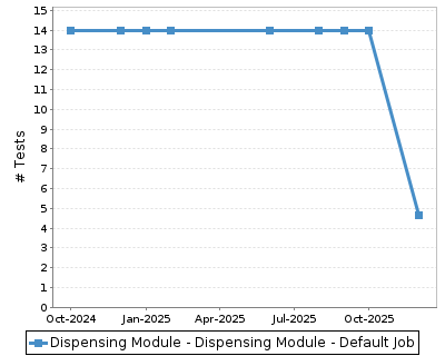 This page summarises information for results of test cases for Last 25 builds in Dispensing Module - Dispensing Module - Default Job.
