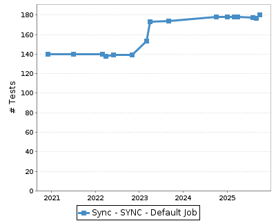 This page summarises information for results of test cases for Last 25 builds in Sync - SYNC - Default Job.